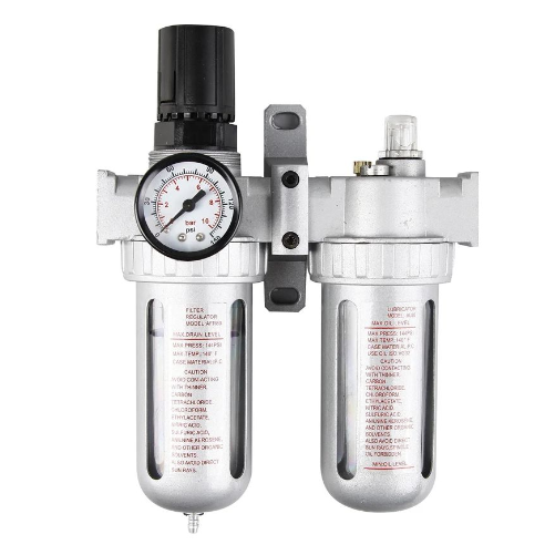 Фильтр влагоотделитель двойной AFRL802 1/4" с регулятором и лубрикатором Pegas pneumatic PGS-4701 предназначен для удаления из сжатого воздуха капель влаги, твердых частиц, конденсата, также для поддержания рабочего давления на заданном уровне. Также оснастка обеспечивает подвод смазочного материала из резервуара в поток сжатого воздуха к элементам пневмосистемы. Рабочее давление блока подготовки воздуха 8 бар.