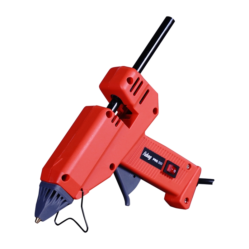 Термоклеевой пистолет PRG 200 предназначен для быстрого склеивания поверхностей из дерева, стеклокерамики, кожи, картона, текстиля, ДСП, линолеума, пластика и прочих материалов горячим клеем. Работает с клеевыми стержнями диаметром 11 мм. Оснащен металлической скобой для удобного хранения.