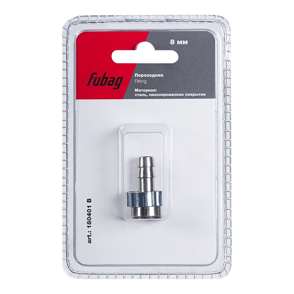 Переходник для соединения шланга 8 мм и пневмоинструмента. Крепление к инструменту - байонет. Обжимное колько 8x13 мм в комплекте, поставляется в блистере.