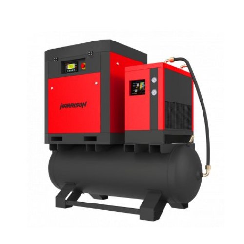 HRS-951300TD3 Винтовой компрессор с ресивером и осушителем Harrison: 1300 л/мин; 10 бар; 11 кВт. Моноблочные компрессорные установки Harrison «три в одном» (3 в 1) включают винтовой компрессор, ресивер горизонтального типа и осушитель-рефрижератор, который производит подготовку и очистку сжатого воздуха исполнительным устройствам. Особенностью данного модельного ряда является оптимальная (с точки зрения экономии рабочих площадей) компоновка: винтовой компрессор и осушитель размещаются непосредственно на ресивере. Чаще всего модели моноблочного типа «3 в 1» используются на предприятиях, где нет возможности установить компрессор, осушитель и ресивер по-отдельности.